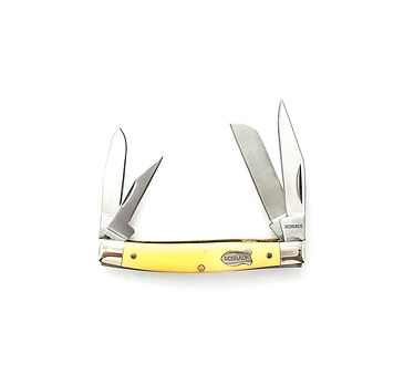 There is 3 patterns of Stockman pocket knives. Straight, sowbelly and serpentine. This is a serpentine stockman pattern. Legend behind this pen knife pattern is farmers used to maintain there livestock with this sort of knife. Stockman patterns has 3 knives, but this one includes a fourth blade which is very nice to have. From left to right, Spey, wood carver, sheepsfoot and clip point blades. The wood carver blade is the extra blade that is so nice to have if you like whittling and carving wood. The handle is made from derlin material and is a nice classic yellow color which makes it easier to find the knife if you accidentally drop it on the ground. - Tom